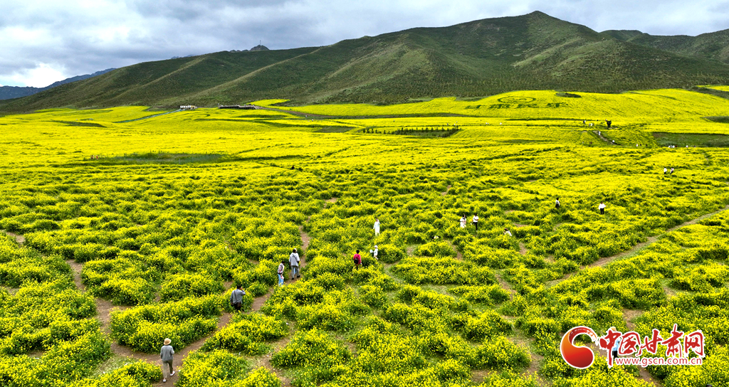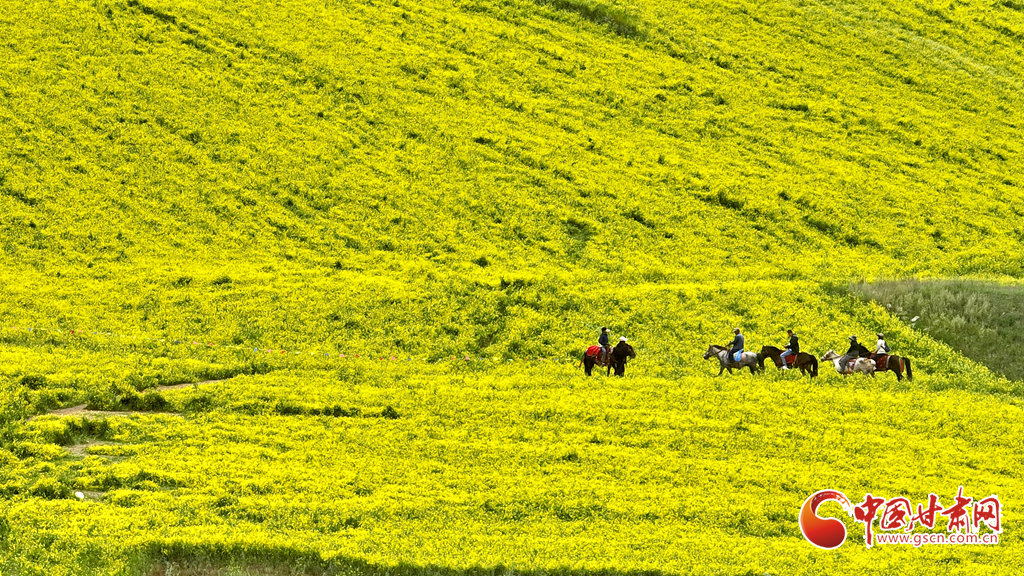 7月24日,位于祁連山北麓的甘肅省張掖市民樂縣扁都口休閑旅游景區(qū),山坡上油菜花競相開放,放眼望去,遍地金黃,宛如黃色花海依偎在祁連山腳下,非常壯觀,成為七月河西走廊一道亮麗的風景,吸引了全國各地的游客前來觀賞游覽。