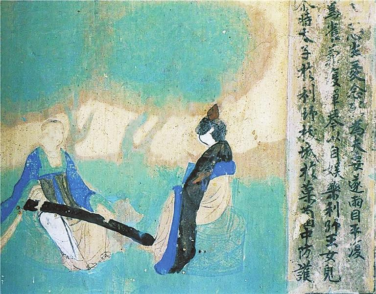在莫高窟第321窟壁畫(huà)中有一幅“青年男女圖”:畫(huà)面中一對(duì)戀人穿著“情侶衫”,女子的上衣與男子的長(zhǎng)袍是同樣的淡綠色。他們兩人身材高挑、情意綿綿,女子右手前指,含情脈脈望向男子,男子喜不自禁,右手緊握著女子長(zhǎng)長(zhǎng)的左邊衣袖。在莫高窟第85窟壁畫(huà)中有一幅“樹(shù)下彈琴圖”:畫(huà)面描摹的是波羅奈國(guó)太子善友與作惡多端的弟弟惡友的故事。善友被弟弟設(shè)計(jì)陷害,雙目失明,悲憤不已的他只能在樹(shù)下彈琴來(lái)排遣不幸,美麗的利師跋國(guó)公主被他的琴聲吸引感動(dòng),不顧一切與他結(jié)為夫妻。后來(lái)在公主的幫助下,善友太子奪回了屬于自己的一切。畫(huà)面里的善友與公主二人神色寧?kù)o,祥和雋永。在榆林窟第38窟壁畫(huà)中有一幅“同入青廬圖”:畫(huà)面上一對(duì)男女衣著華美,男子一襲赭紅長(zhǎng)衫,喜氣洋洋;女子著套色衣裙,衣袂飄飄,緊緊依偎在愛(ài)人身邊,正可謂“金風(fēng)玉露一相逢,便勝卻人間無(wú)數(shù)”。