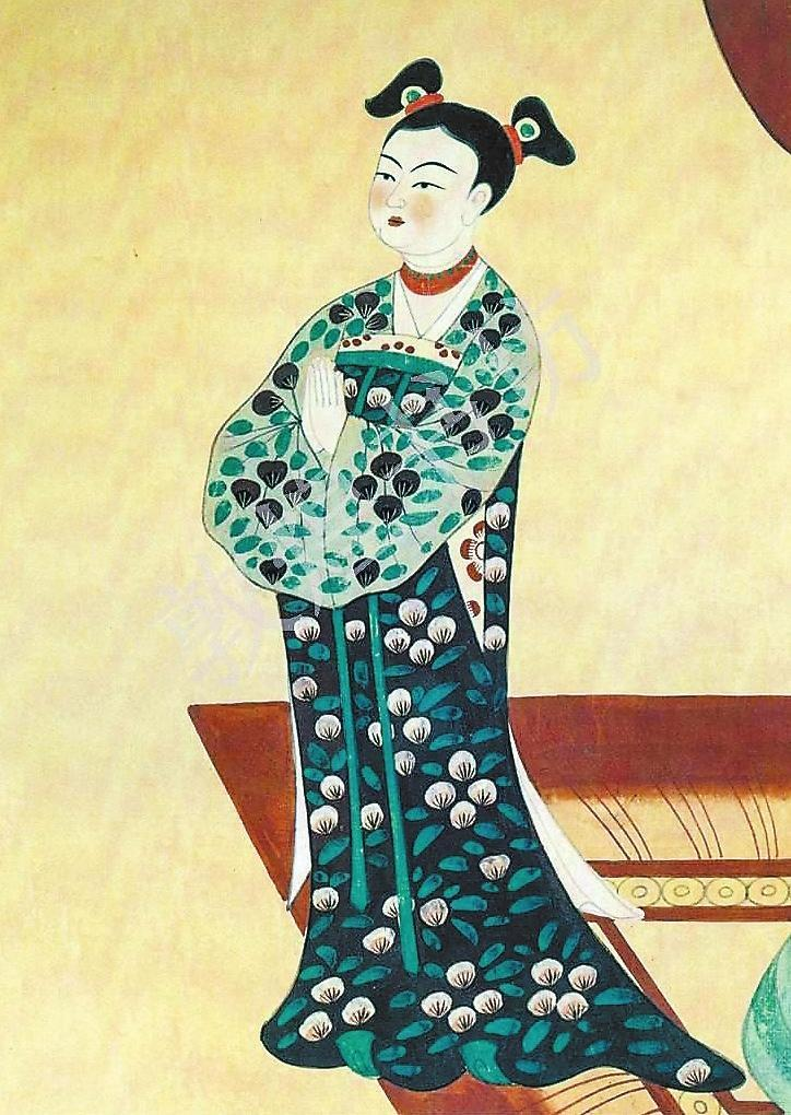 我們都知道服裝最經(jīng)典的配色是黑白灰,尤其是黑白配,其實(shí)這種配色也是敦煌壁畫(huà)中的經(jīng)典。在莫高窟第100窟壁畫(huà)中有一幅“舞者圖”:畫(huà)面上男舞者被定格在一個(gè)扭腰送胯雙臂屈伸的舞蹈動(dòng)作中,他上身穿著中長(zhǎng)款的黑色圓領(lǐng)長(zhǎng)袖缺胯衫,用白色帛帶束腰。下身則搭配一條白底團(tuán)花大口褲。在莫高窟第12窟壁畫(huà)中有一幅“供養(yǎng)人圖”:畫(huà)面上一對(duì)母女身著襦裙,上襦下裙的著裝風(fēng)格相當(dāng)于今天服飾的無(wú)袖連衣裙加一件長(zhǎng)袖開(kāi)衫。在畫(huà)面上女兒的上衣和媽媽的裙子是同樣的藍(lán)色,女孩的裙子和媽媽上衣是同為赭色,只不過(guò)各自的花紋樣式不同,但是母女倆胸前的結(jié)帶卻是同色同花、一模一樣。畫(huà)師如此別出心裁的呼應(yīng),顯得既溫情又醒目。