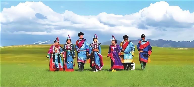 元、明時(shí)期蒙古族進(jìn)入甘肅,后來(lái)又經(jīng)過(guò)各類(lèi)遷徙、文化交流與改變,為適應(yīng)寒旱牧區(qū)的生活環(huán)境和放牧騎獵的生活方式需要,蒙古族服裝多為寬大的長(zhǎng)袍、長(zhǎng)坎肩、腰帶、帽子、靴子,有男女區(qū)別、長(zhǎng)幼區(qū)別、季節(jié)區(qū)別、節(jié)日與日常的區(qū)別,最為盛大的當(dāng)屬婚慶服飾。
