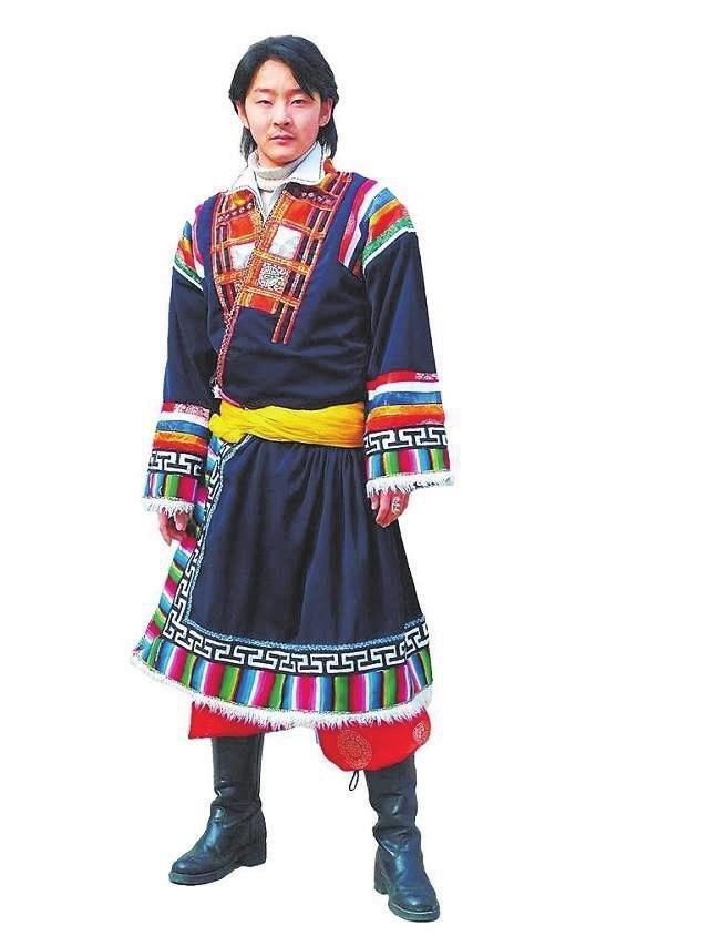 甘肅藏族因地理?xiàng)l件與生產(chǎn)生活方式的不同,可區(qū)分為牧區(qū)、農(nóng)區(qū)和半農(nóng)半牧區(qū)三種類(lèi)型,相應(yīng)其服飾也有所差異,有生活裝和節(jié)日盛裝的區(qū)別。牧區(qū)服飾以甘南瑪曲、夏河為典型,男女都內(nèi)著半高領(lǐng)、左衽的滾邊夾襖,多用紅、綠、藍(lán)、褐色綢緞制作,喜歡用水獺皮等裝飾衣襟邊。夏日穿氆氌做的“日拉”,春秋穿羊羔皮做里,外罩綢緞面的“察日”,冬天穿大羊皮縫制的“早化”。男款袍服寬大,冬袍領(lǐng)子鑲豹皮;現(xiàn)代女款藏袍吸收了近現(xiàn)代旗袍的特點(diǎn),注意腰身的裁剪設(shè)計(jì),領(lǐng)部鑲豹皮,在領(lǐng)角處裝飾彩色布條;襟裙下擺和袖口處多疊綴三種紋樣的氆氌,或用白羔皮、水獺皮和織錦花邊依次裝飾。