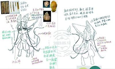 “這是我們設(shè)計的吉祥物‘活字’,它的周邊懸浮著一圈漢簡,頭是動漫風(fēng)格的獸首,兩個獸角是甲骨片的樣式,棕色的身體呼應(yīng)了埋藏西北漢簡的沙漠。”負(fù)責(zé)工作室運(yùn)營的學(xué)生興致勃勃地介紹著設(shè)計圖。他們告訴記者,吉祥物尾巴參照三星堆青銅神樹做成了燈盞的樣式,上面承載一個火種。它既有指引之義,又象征著中華文化傳承不滅。