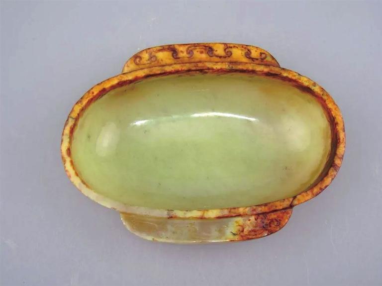 羽觴,多美妙風(fēng)雅的名稱,它的基本形制是扁橢圓,弧形壁,淺腹平底,餅形足或高足,口緣兩側(cè)各有一個半月形耳或方形耳。這種形制始于春秋戰(zhàn)國,是由橢杯、舟等演變而來,盛行于秦漢至魏晉南北朝,唐代以后便很少見到。其材質(zhì)有漆木、青銅、金、銀、玉、陶等,其中玉耳杯由諸侯王、列侯等身份地位比較高的人使用,漆耳杯使用者范圍較廣泛,上至帝王諸侯,下至一般貴族均可使用。