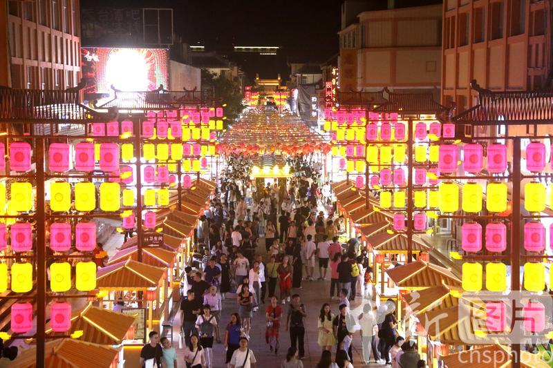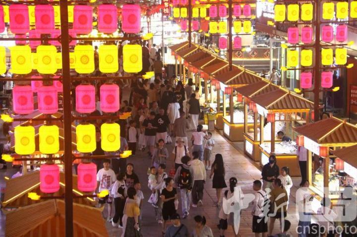 2024年8月17日,游客在甘肅省敦煌夜市游覽。進入暑期以來,被譽為敦煌“夜景圖”的敦煌夜市日均客流量達3萬人次以上,游客在這里賞景游覽休閑,品嘗地方名優(yōu)小吃,選購敦煌特色文創(chuàng)產(chǎn)品,感受敦煌文化魅力,夜經(jīng)濟活力四射。中新社發(fā) 張曉亮 攝