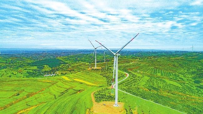 來(lái)到山腳下,眺望四周,頓覺(jué)牛營(yíng)大山的巍峨。碧綠的牛營(yíng)大山儼然是一幅迷人的立體式畫(huà)卷。藍(lán)天、白云、松柏、綠茵、花草、溪流……如果展開(kāi)這幅畫(huà)卷,那簡(jiǎn)直就是視覺(jué)的盛宴。連綿的群山上筆直挺立的一座座白色的風(fēng)車不停飛轉(zhuǎn),從藍(lán)天白云間灑下來(lái)的陽(yáng)光,映照在潔白高聳的風(fēng)機(jī)組上,像是涂了胭脂的嬌媚臉蛋,亭亭玉立的軀干也披上了金色陽(yáng)光做成的長(zhǎng)裙,那腰肢顯得格外柔美。