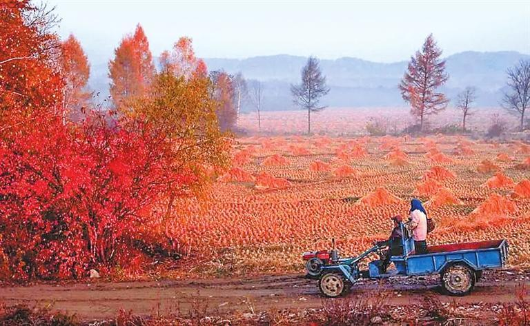 各個街口涌出的大車,宛若一條條歡快的溪流,或匯入主流奔向大道,或錯肩而過進(jìn)入岔道。各家各戶的車把式,吆著喝著,比著拼著,迎著晨曦,向著自家豐收了的莊稼地奔去。