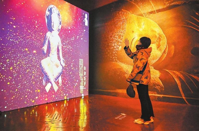 觀眾通過(guò)數(shù)字技術(shù)與敦煌文物互動(dòng)。孫凡越