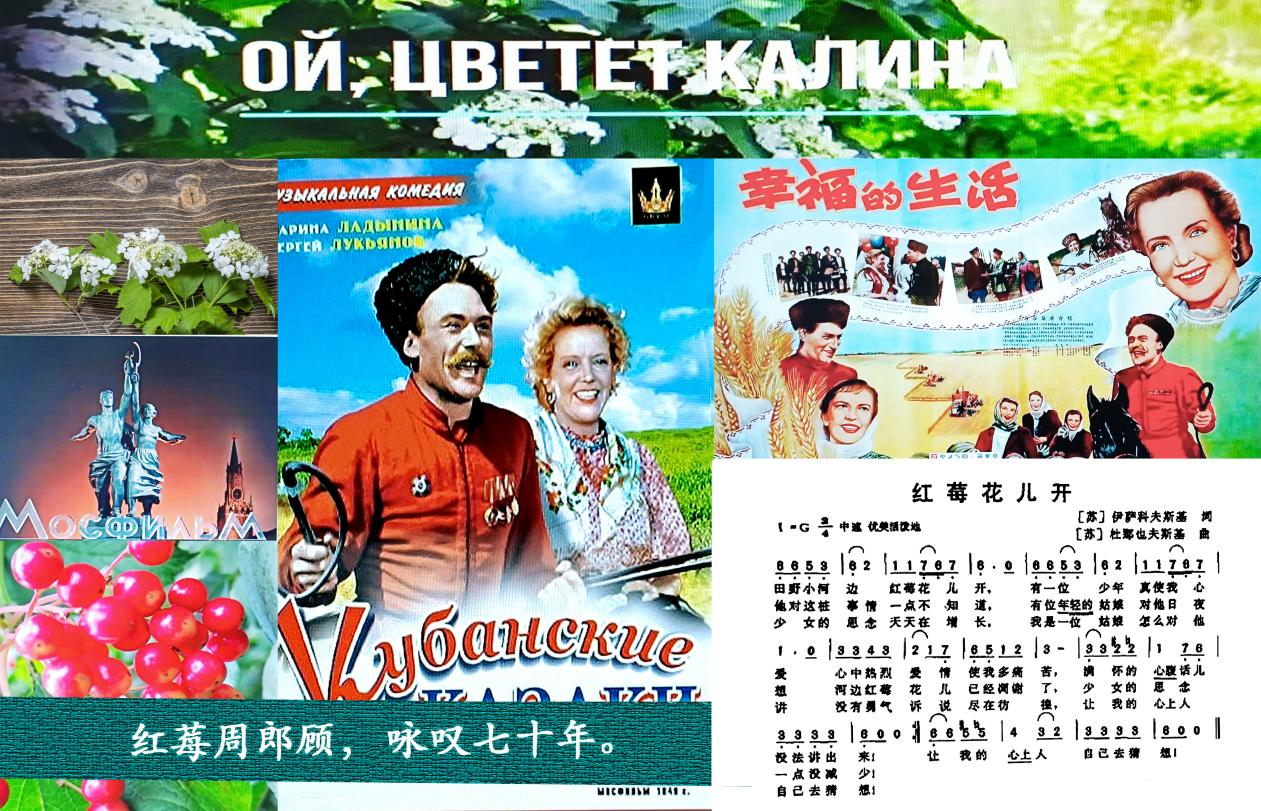 6、悠悠老歌箋:悠悠:長久、遙遠。語出《詩經(jīng)·鄭風(fēng)·子衿》:“青青子衿,悠悠我心。”老歌箋:指在我國翻譯并傳唱至今的蘇聯(lián)電影《幸福的生活》插曲《紅莓花兒開》。