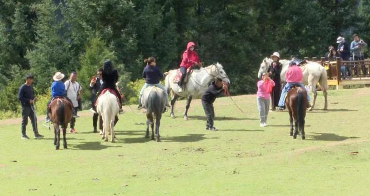 游客在扎尕那景區(qū)內(nèi)騎馬游覽。(受訪(fǎng)者供圖)