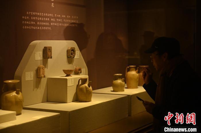 10月27日,在甘肅省蘭州市甘肅省博物館,游人參觀“唐風(fēng)妙彩 —— 長沙窯瓷器精品展”。中新社記者 李亞龍 攝