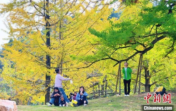 中新網(wǎng)蘭州10月28日電(高展)“霜降”過后銀杏黃。秋陽映照下,甘肅隴南市徽縣嘉陵鎮(zhèn)田河村宛如披上絢麗新裝,詩意夢幻。此地四周青山環(huán)抱,嘉陵江如靈動(dòng)絲帶蜿蜒流淌,水豐土腴、氣候溫潤,為銀杏營造絕佳生長環(huán)境。徽縣委副書記、縣長王福全稱,銀杏,不僅承載著千年的歷史沉淀,更以其獨(dú)特的風(fēng)姿和韻味,成為徽縣一張亮麗的名片。