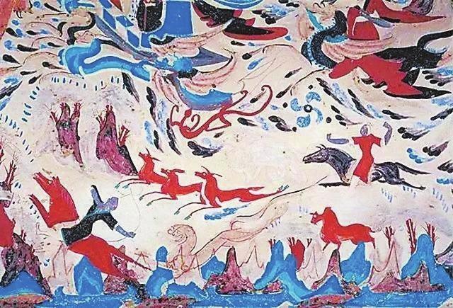在莫高窟第249窟壁畫中有一幅“行獵圖”:畫面上都是些體型巨大的動(dòng)物,有體態(tài)矯健的猛虎、疾馳俊逸的鹿群、整裝待發(fā)的獅子等,有在奔馳的駿馬上拈弓搭箭窮追不舍的獵人,還有在飛奔的駿馬上淡定轉(zhuǎn)身從容射虎的獵人。整個(gè)畫面既緊張又美好,使人不由得對(duì)畫師精湛的技藝心悅誠(chéng)服。唐代詩(shī)人王維在詩(shī)作《觀獵》中寫道:“風(fēng)勁角弓鳴,將軍獵渭城。草枯鷹眼疾,雪盡馬蹄輕。忽過新豐市,還歸細(xì)柳營(yíng)?;乜瓷涞裉?,千里暮云平。”意思是說將軍的獵騎,飛馳在渭城的近郊。風(fēng)中傳來呼嘯的弦聲。已枯的野草,擋不住尖銳敏捷的鷹眼,積雪后飛馳的駿馬馬蹄會(huì)愈加輕盈。據(jù)文獻(xiàn)記載,唐宋時(shí)期人們打獵時(shí)多有一種“西北望,射天狼”的豪情!在莫高窟第85窟壁畫中還有一幅“行獵圖”就形象地反映了唐人狩獵的情景:畫面上的四個(gè)健碩獵人正在整裝出獵,他們著裝統(tǒng)一:頭戴幞頭,身穿缺胯衫,足蹬半腰靴。打獵的裝備也很不同:有人胳臂上架鷹、有人單手牽犬、有人持弓挎箭囊,甚至還有一人手持利斧。