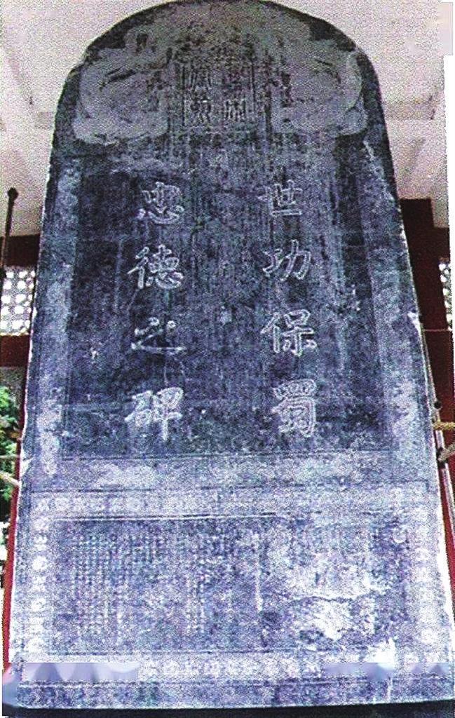 碑陽額刻二龍圖,篆“皇帝宸翰”,字徑0.22米,碑身刻宋寧宗書“世功保蜀忠德之碑”八字,楷書豎行2行,行間刊有篆書“敕令寶璽”和楷書“修政殿書”八個(gè)小字,四周環(huán)刻八龍騰云圖。碑文刻吳挺之子吳曦自記《感恩表記》,碑文楷書計(jì)8461字,內(nèi)容記載吳氏三代抗金保蜀的功績(jī)。