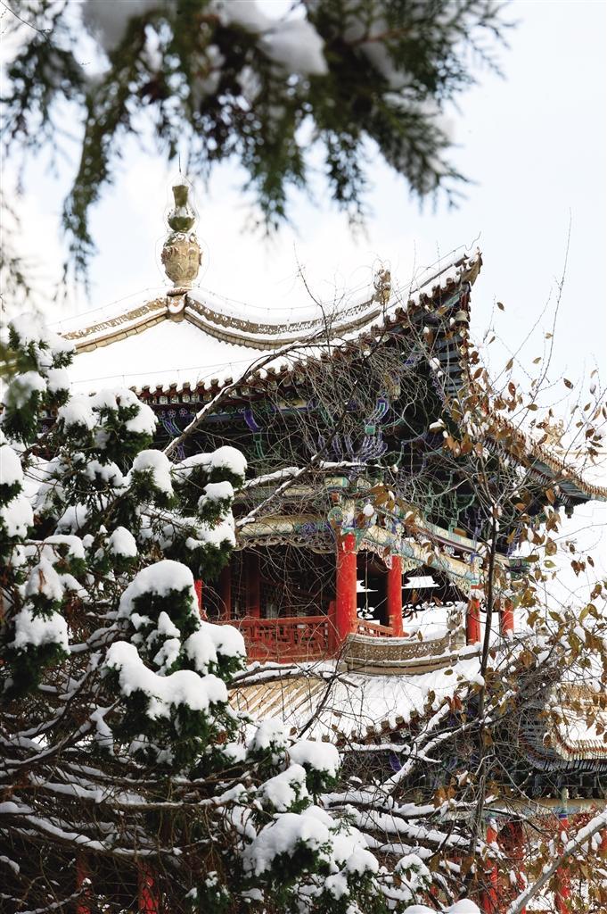 11月25日,雪后的蘭州五泉山公園銀裝素裹,迷人雪景如畫。古老亭臺樓閣紅墻玉頂、參天古樹玉樹瓊枝,宛如大地書寫的一幅“水墨丹青”,美不勝收,游客紛至沓來,賞雪、拍照,盡情享受清爽的空氣和潔白的美景。 奔流新聞·蘭州晨報記者 裴強(qiáng) 攝