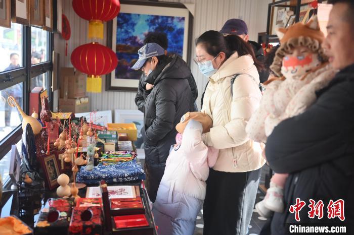 2月8日,甘肅省蘭州市城關(guān)區(qū)“非遺年貨購(gòu)物月”活動(dòng)現(xiàn)場(chǎng),游人選購(gòu)非遺文創(chuàng)產(chǎn)品。中新社記者 李亞龍 攝