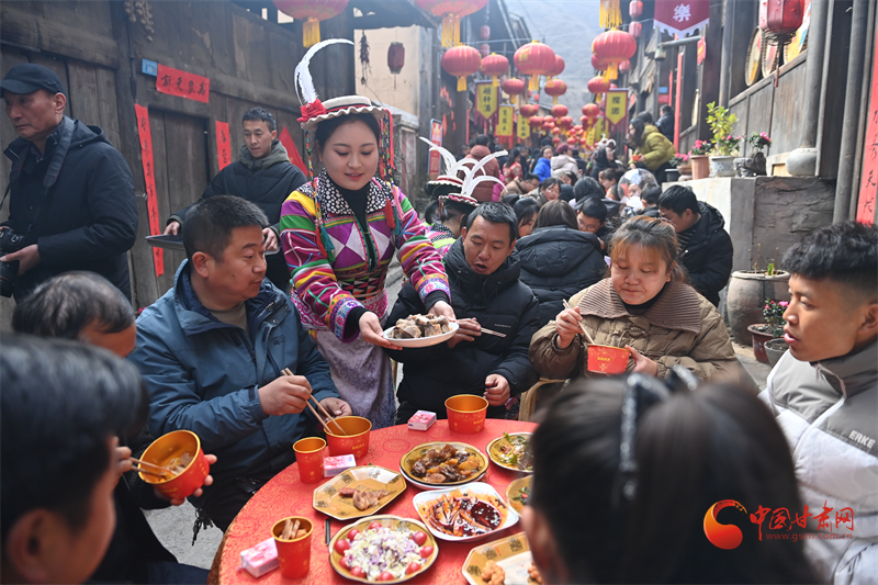 得益于良好的民俗文化保護,位于文縣鐵樓鄉(xiāng)的白馬山寨,將民俗歌舞搬上田園舞臺,游客走進村莊就能在生活中看到白馬群眾載歌載舞的場景。特別是元宵佳節(jié),白馬山寨更是熱鬧。