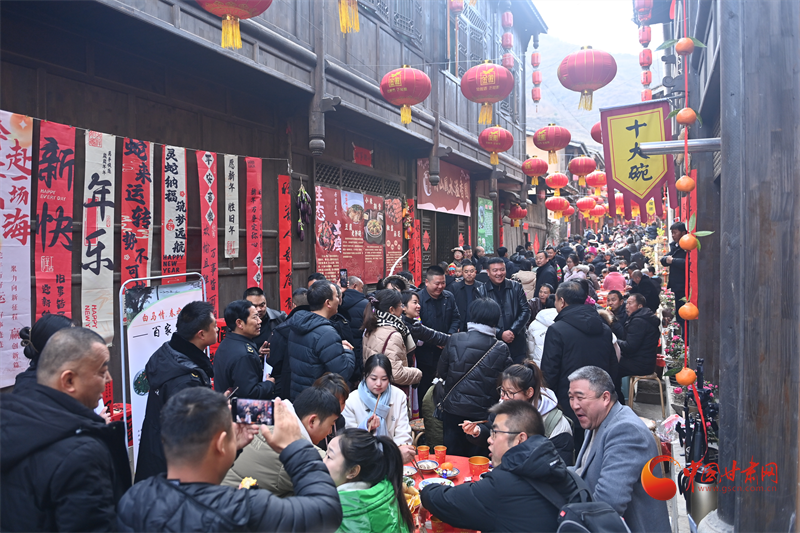 白馬民俗長街宴,美食沿著古巷分布,桌椅板凳綿延幾百米,家家戶戶帶來特色美食,一起與游客分享,帶來團圓的問候和特有的民俗體驗,臘肉、臘排都是農(nóng)家食材,十大碗更是當(dāng)?shù)孛朗程厣?/p>