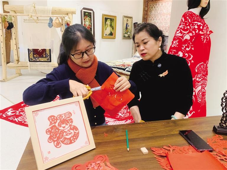 2007年,安寧剪紙被列入安寧區(qū)第一批非物質文化遺產代表性項目名錄,2011年又成功入選蘭州市第二批非物質文化遺產代表性項目名錄。52歲的剪紙藝術家史婷,是國家級非遺代表性傳承人。春節(jié)前夕,史婷剪紙工作室里人來人往,熱鬧非凡。她以“蛇元素”為主題,創(chuàng)作了《蛇盤兔》《雙蛇送?!返茸髌罚€有福字、掛歷、抱枕等特色剪紙作品。一把剪刀在她的手中上下翻飛,剪出了“指尖上”濃濃的年味兒。