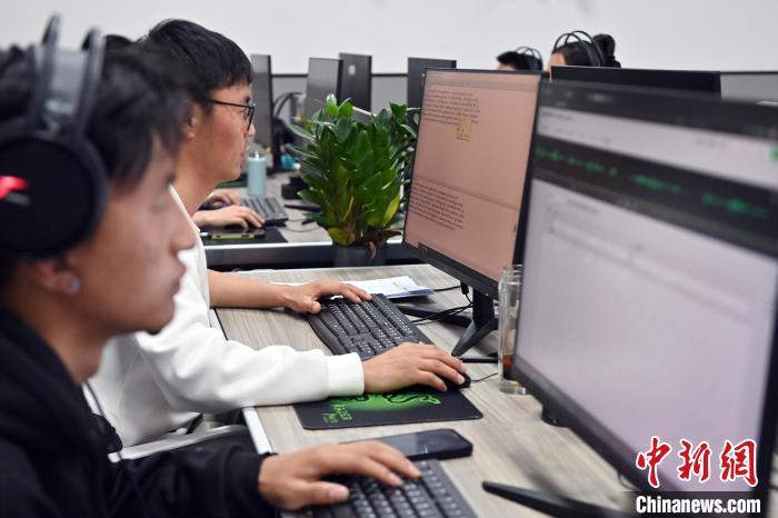 2月27日,在甘肅甘南藏族自治州碌曲縣益西達(dá)吉科技有限公司內(nèi),工作人員正在進(jìn)行藏文古籍?dāng)?shù)字化相關(guān)工作。該公司主要從事民族古籍?dāng)?shù)字化建設(shè)和古籍文獻(xiàn)數(shù)據(jù)庫建設(shè),自2019年以來,承擔(dān)西藏、四川、甘肅等省區(qū)的藏文古籍?dāng)?shù)字化項(xiàng)目。圖為工作人員用該公司研發(fā)的藏文信息處理系統(tǒng)對古籍?dāng)?shù)字化內(nèi)容進(jìn)行檢查。中新社記者 九美旦增 攝
