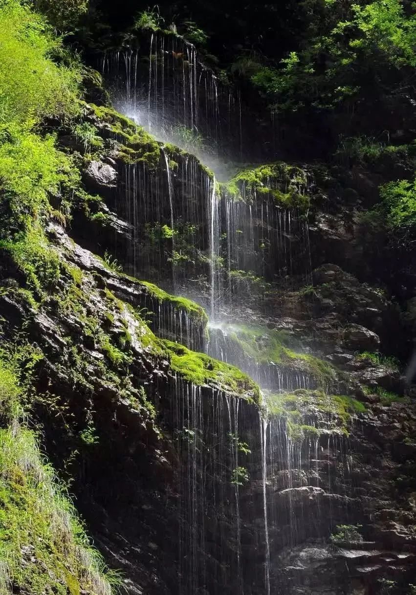 這些瀑布有的如白練懸空,一瀉千里;有的如珠簾垂掛,水霧彌漫。水流從懸崖頂端飛瀉而下,發(fā)出震耳欲聾的轟鳴聲,仿佛是大自然奏響的雄渾樂章。站在瀑布之下,水汽撲面而來,讓人感受到一種磅礴的氣勢和生命的律動。