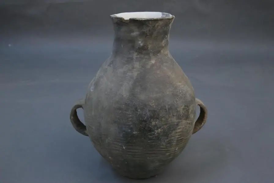 籃紋雙耳灰陶罐(寧縣博物館藏)