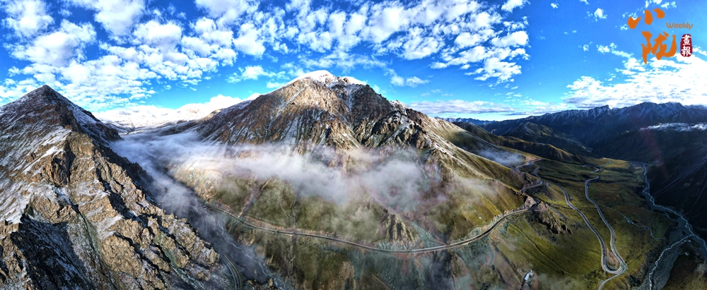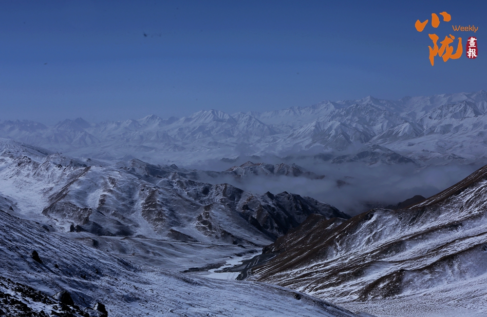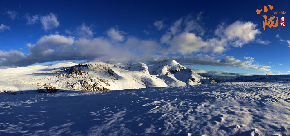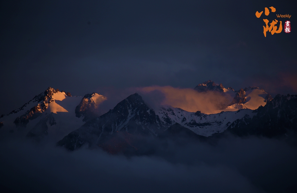 側(cè)目而視,近日一場降雪和夏日閑云相伴相依,近處的雪和遠處的云相映成趣,共同把天空擦拭得深藍如鏡。這種“積雪長留峰素裹,浮云飄忽去無邊”的夢幻景色,會將你平日里積蓄在心頭的那些世俗凡塵濯洗得干干凈凈,有一種遠離人世的幻覺。