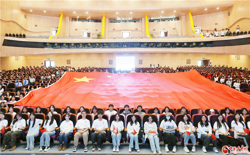 伴隨著震撼的誓言,一面巨大的五星紅旗從會(huì)場(chǎng)后方徐徐展開(kāi),幾乎鋪滿整個(gè)會(huì)場(chǎng),“扎根西部、報(bào)效祖國(guó)”的豪情與壯志在現(xiàn)場(chǎng)涌動(dòng)。