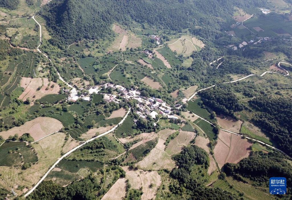 7月14日拍攝的青泥嶺上的村莊和鄉(xiāng)村道路(無人機(jī)照片)。新華社記者 馬寧 攝