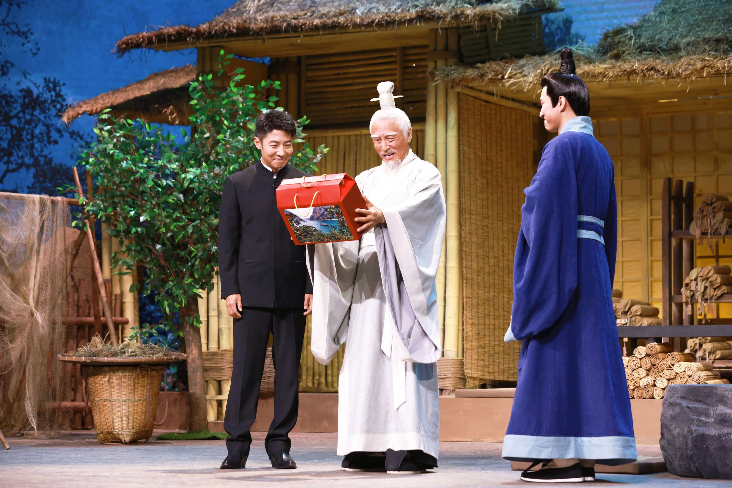 舞臺上,屈原對著聶海勝、劉伯明、湯洪波三名中國航天員連連揮手,他抑制不住內(nèi)心的激動:“路曼曼(漫漫)其修遠(yuǎn)兮,吾將上下而求索。我看到了最浪漫的詩!我把詩寫在竹簡上,他們把詩寫在宇宙中!”