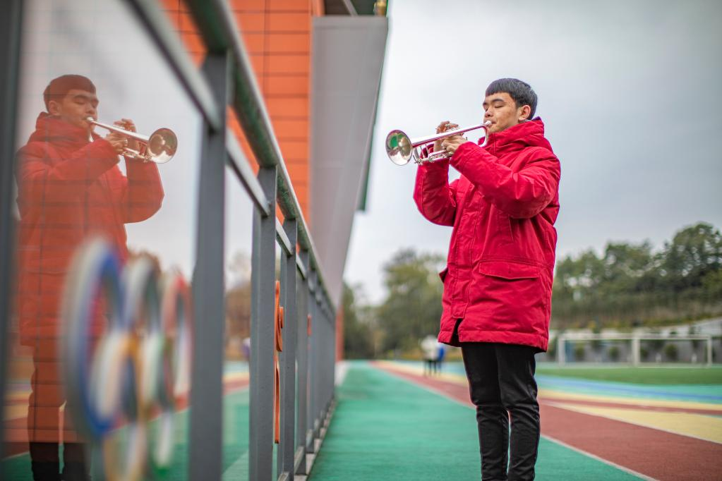 改編后的國(guó)際殘奧委會(huì)會(huì)歌,引子是由小號(hào)奏出高亢嘹亮的號(hào)角。小號(hào)手王太樊,吹響了第一聲旋律。他和盲童小伙伴們,用音樂“看見”了世界,也讓世界看到他們。