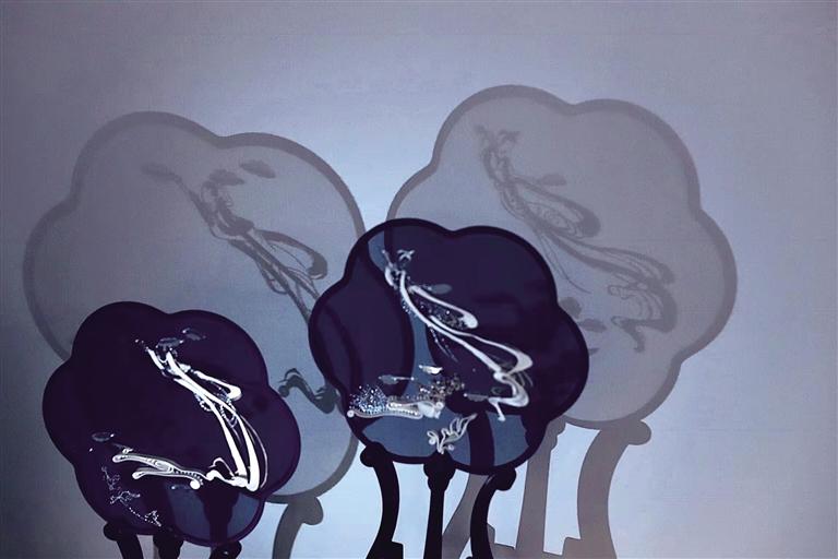 2019年劉瑤手繡的一組《敦煌手姿》扇面問世,黑色的生絹之上,用金線刺繡出敦煌手姿的婀娜曼妙。劉瑤在創(chuàng)作中,用線條貫穿每一個(gè)細(xì)節(jié),極盡傳情達(dá)意,用針與線賦予了手姿柔美與力量。也正是憑借著這一組精美絕倫的“敦煌風(fēng)”扇面,劉瑤叩開了這個(gè)項(xiàng)目的大門,成為了甘肅省唯一的入選者。