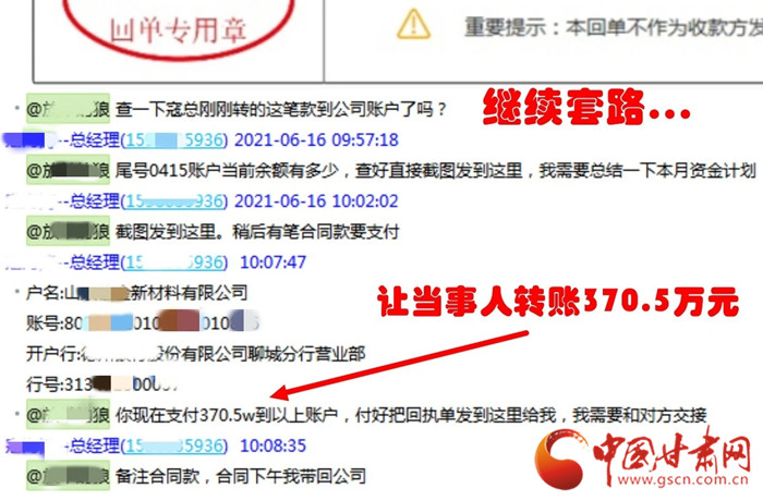 據(jù)了解,6月16日上午9時(shí)20分左右,安寧區(qū)某公司財(cái)務(wù)人員岳先生收到一封由“公司股東”發(fā)來(lái)的電子郵件,在郵件中推送了一個(gè)新建的QQ工作群,岳先生沒有多想就加入了此群。不久后,詐騙分子在此QQ群中冒充該公司法人和另外一名財(cái)務(wù)人員對(duì)岳先生下達(dá)指令,要求其向?qū)Ψ街付ㄣy行賬戶轉(zhuǎn)賬合同款370.5萬(wàn)元。