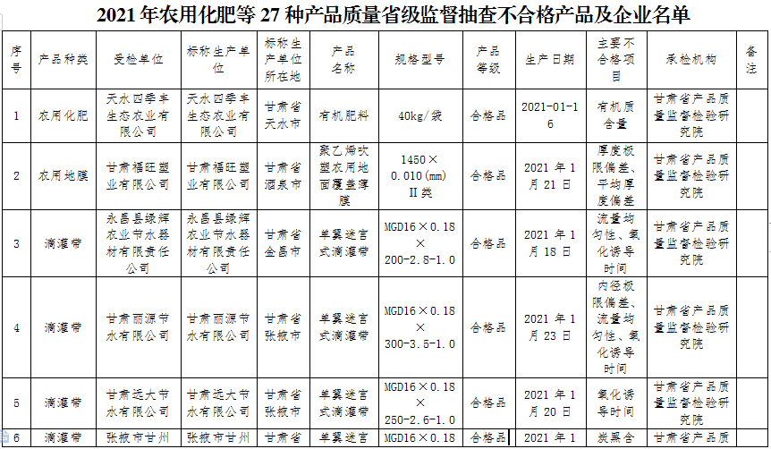 2021年農(nóng)用化肥等27種產(chǎn)品質(zhì)量省級監(jiān)督抽查不合格產(chǎn)品及企業(yè)名單(點擊下載)