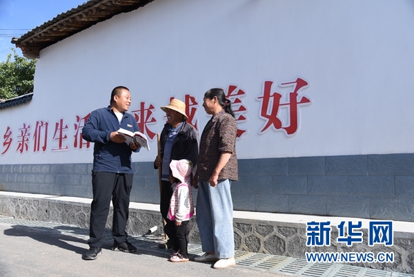 8月5日,元古堆村內,村支書朱惠軍正在進行普法工作。新華社記者 崔翰超 攝