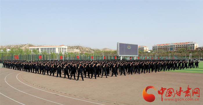 4月23日上午,甘肅警察職業(yè)學(xué)院訓(xùn)練場(chǎng)上,警旗獵獵,方陣巍巍。