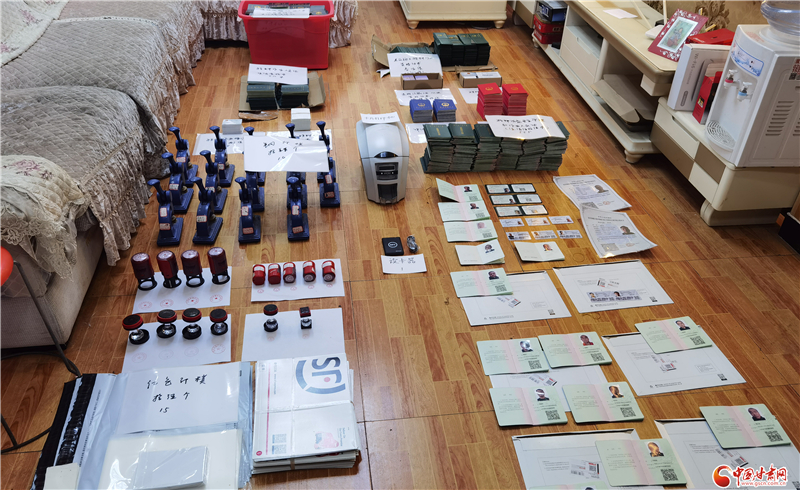 至今年3月,專案組陸續(xù)抓獲涉嫌非法利用信息網(wǎng)絡(luò)、偽造國(guó)家證件犯罪嫌疑人陳某及嫌疑銷售假證人員20余人,現(xiàn)場(chǎng)繳獲制證工具1套、假冒政府機(jī)關(guān)鋼制印模14臺(tái)、原子印模15枚,扣押假冒特種設(shè)備作業(yè)從業(yè)人員、道路運(yùn)輸從業(yè)人員等10種從業(yè)資格證3660本,查明安徽、四川、云南、山東、福建等地購買偽造的國(guó)家機(jī)關(guān)證件人員11457名。