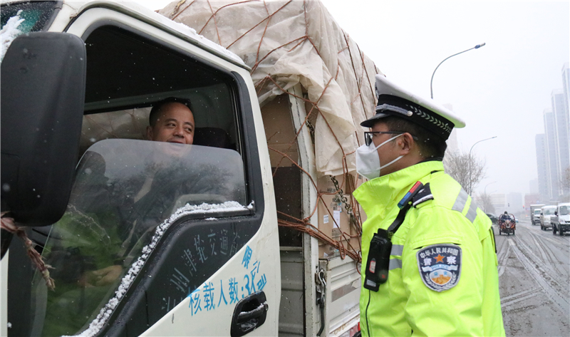 大隊(duì)領(lǐng)導(dǎo)實(shí)地查看道路通行情況,及時(shí)調(diào)整勤務(wù)模式和警力部署,確保降雪天氣各項(xiàng)安全“防控”措施落實(shí)到位。民輔警全員上路,強(qiáng)化重點(diǎn)路段巡邏管控和主要路口值守,對不具備通行條件車輛進(jìn)行勸返或提示繞行。通過鳴笛、喊話、閃爍警燈等措施,提醒駕駛員裝配防滑鏈,減緩車速、保持安全車距、注意觀察路面通行情況,引導(dǎo)車輛和行人安全有序通行。