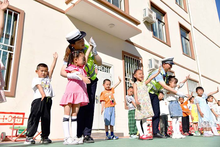 6月13日,臨澤縣公安局交警大隊(duì)法治宣傳民警走進(jìn)濱河幼兒園,通過(guò)現(xiàn)場(chǎng)授課、有獎(jiǎng)競(jìng)答、認(rèn)交通指示牌等寓教于樂(lè)的方式向幼兒們普及了道路交通標(biāo)識(shí)等常識(shí),提高幼兒們的交通安全意識(shí)。新甘肅·甘肅法制報(bào)通訊員 安學(xué)海 攝