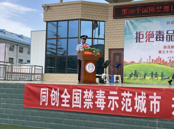 活動(dòng)以化工街派出所教導(dǎo)張華鵬向廣大師生、參與活動(dòng)人員領(lǐng)誓拉開帷幕,宣言鏗鏘有力,承諾擲地有聲,一句句誓言,道出了大家對(duì)拒絕毒品、遠(yuǎn)離毒品的決心。西柳溝街道黨工委副書記袁得琴講話中對(duì)全體到場(chǎng)人員作出倡議,希望大家從自身做起積極加入到全社會(huì)禁毒宣傳志愿者隊(duì)伍中,營(yíng)造“禁毒斗陣、人人參與”的良好社會(huì)氛圍。