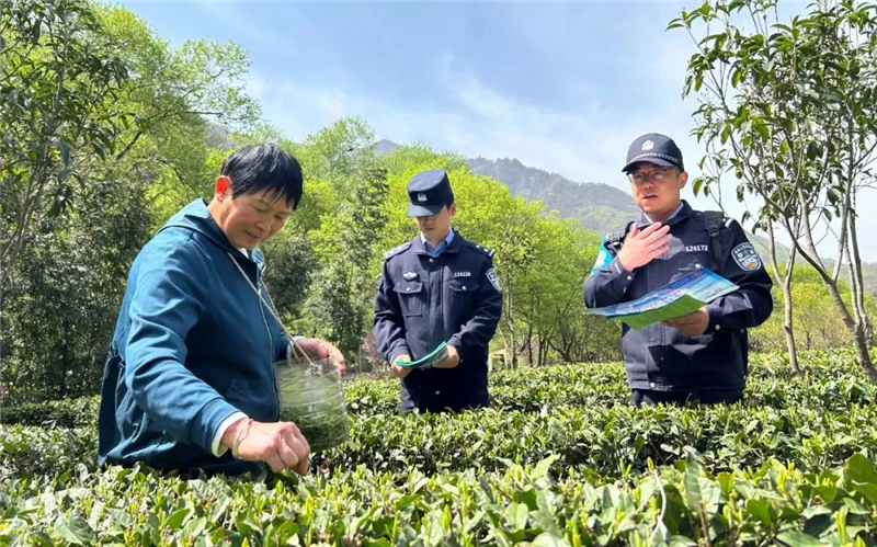 清明節(jié)后,隴南市康縣的茶樹(shù)鮮嫩的新芽迎風(fēng)而立,茶農(nóng)們穿行在茶樹(shù)間熟練地采摘嫩芽,同樣忙碌不歇的還有轄區(qū)派出所的民警們,他們上茶山、進(jìn)茶園、問(wèn)需求、解糾紛,成為春茶豐收畫(huà)卷中的一抹別樣的“警”色。