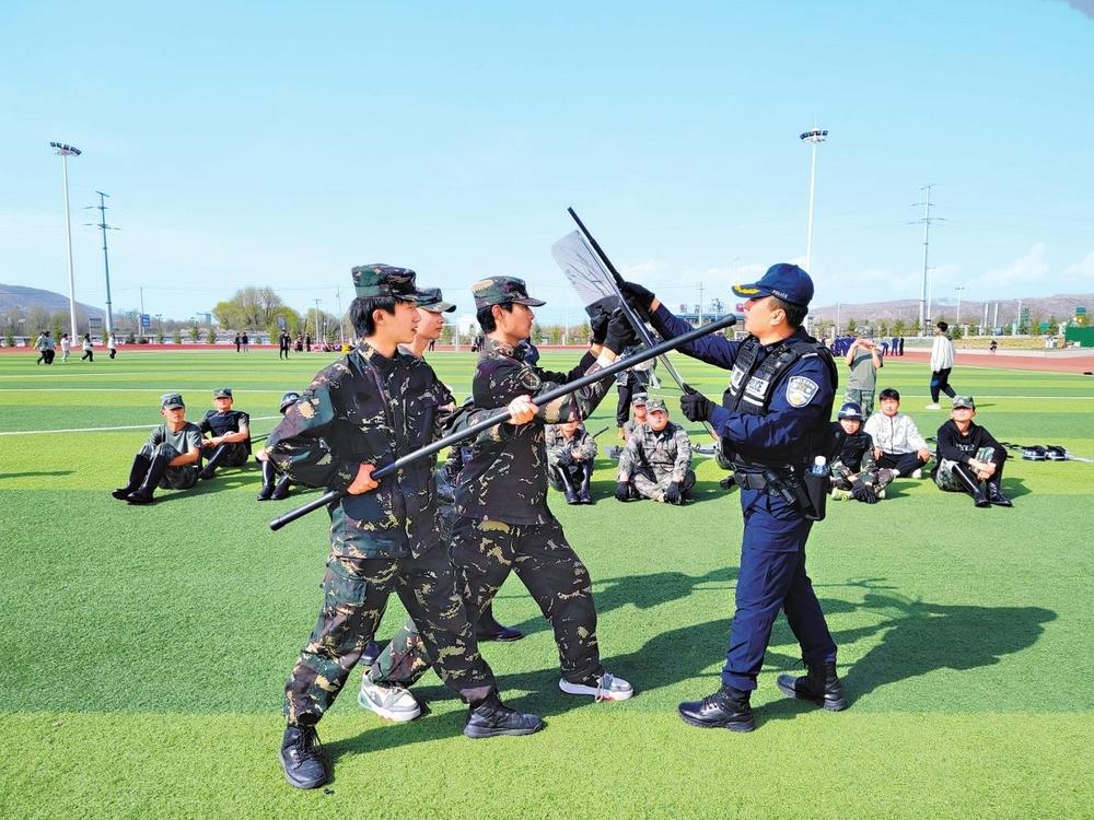 公安民警示范演練反恐防暴技能。4月11日,臨洮縣公安局組織警務(wù)實(shí)戰(zhàn)教官到定西市職業(yè)技術(shù)學(xué)校開展反恐防暴演練培訓(xùn)。新甘肅·甘肅法治報(bào)通訊員李鴻昌攝