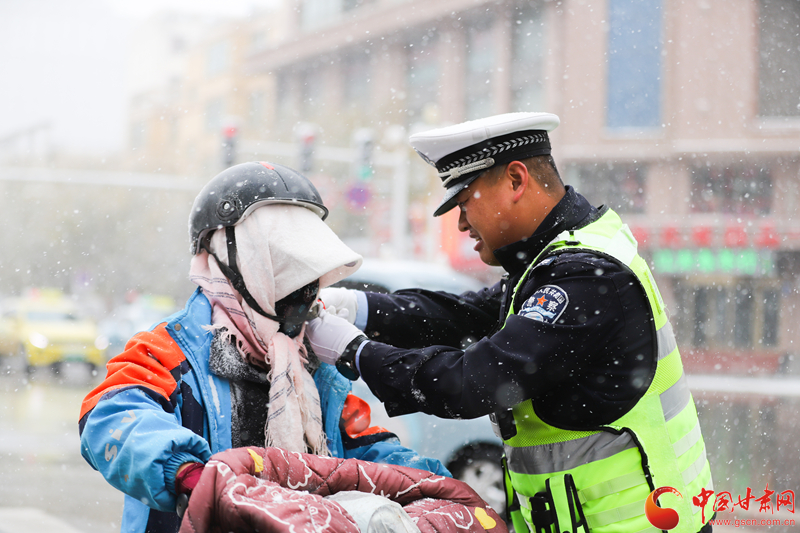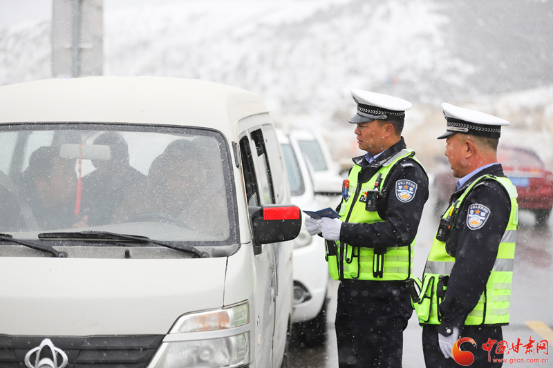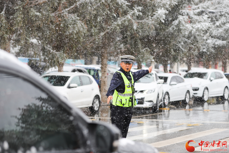隴拍客丨民樂:雪紛飛 “警”相隨 交警守護平安出行路