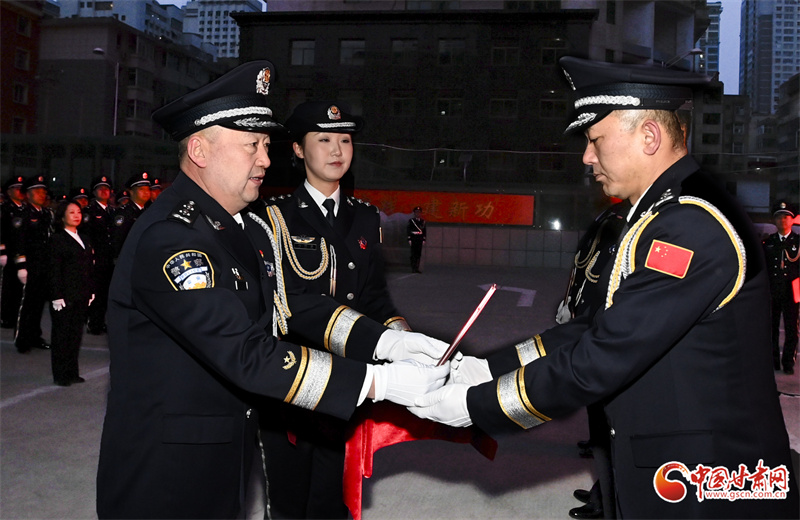 蘭州市公安局黨委副書記、常務(wù)副局長(zhǎng)傅連宏主持儀式。蘭州市局黨委班子成員、副局長(zhǎng),各分縣局、蘭州新區(qū)公安局副局長(zhǎng),市局各部門班子成員和民警代表參加。