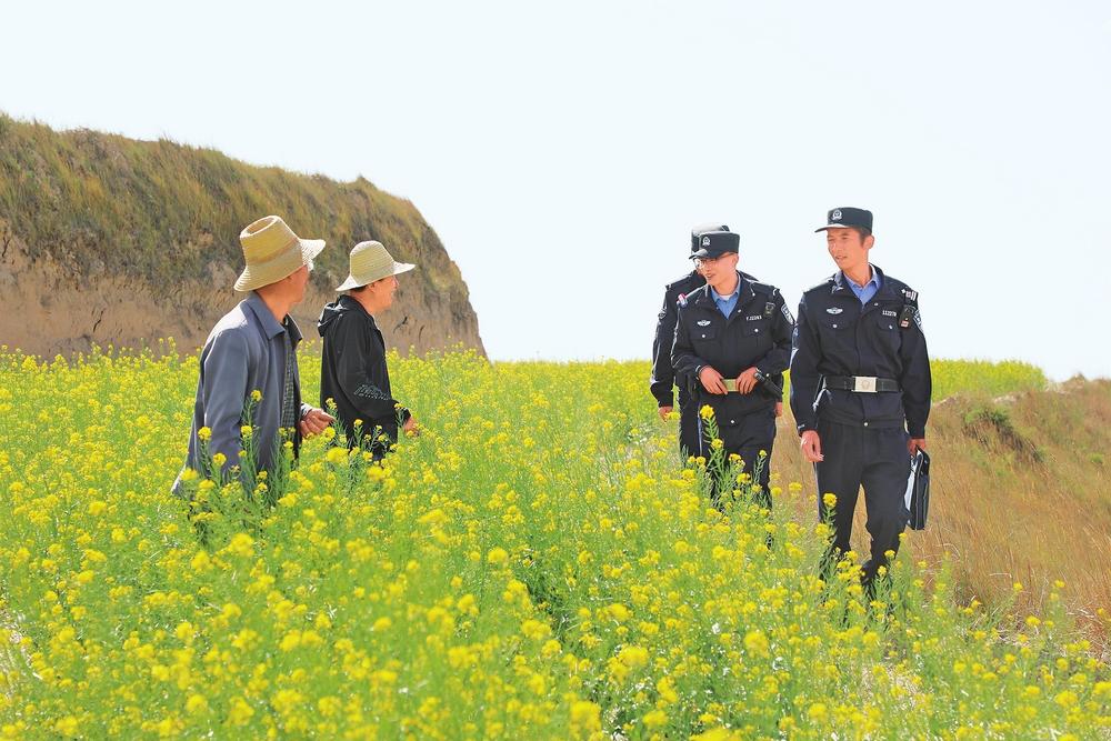民警田間地頭走訪群眾。5月15日,定西市公安局安定分局組織民輔警開展社情民意大走訪,面對面傾聽群眾呼聲、征求群眾意見,解決實際困難,宣講安全知識,不斷增強(qiáng)人民群眾的獲得感、幸福感、安全感?! ⌒赂拭C·甘肅法治報通訊員楊永剛攝