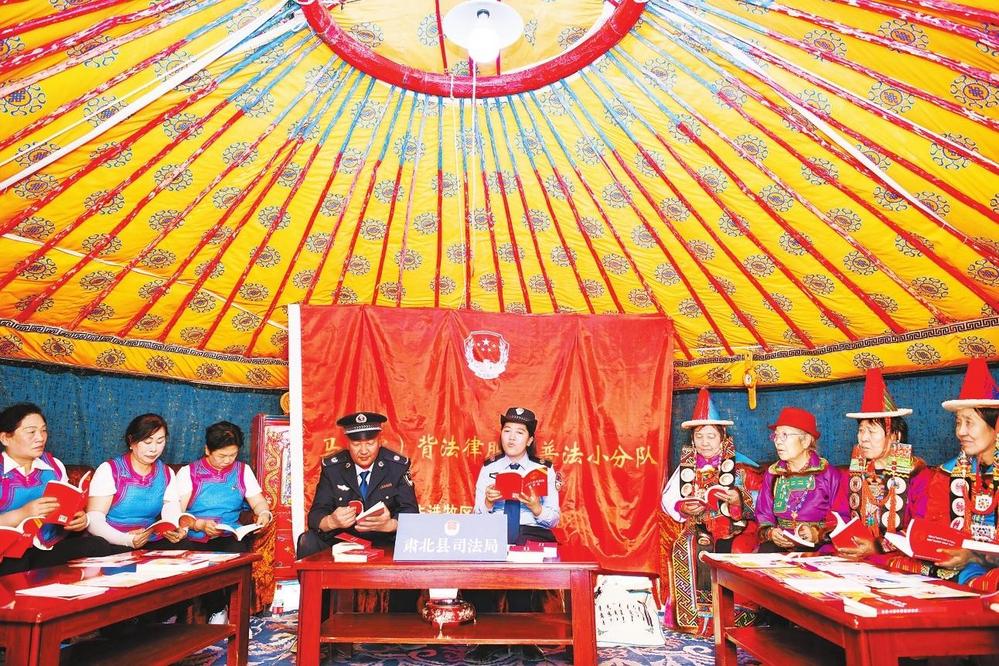 “西出陽關無故人,而今法治伴我行。”在肅北蒙古族自治縣,黨河峽谷的風裹挾著悠揚的馬頭琴聲,將“法治烏蘭牧騎”的歌聲傳向遠方;