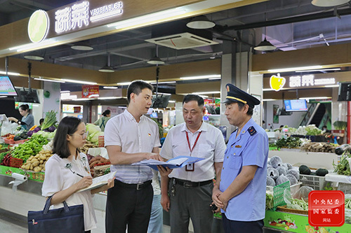 圖為南京市棲霞區(qū)紀(jì)委監(jiān)委針對(duì)“陽光惠民”監(jiān)管平臺(tái)上的預(yù)警信息,組織力量核查該區(qū)星級(jí)農(nóng)貿(mào)市場(chǎng)獎(jiǎng)勵(lì)資金撥付方面的問題線索。