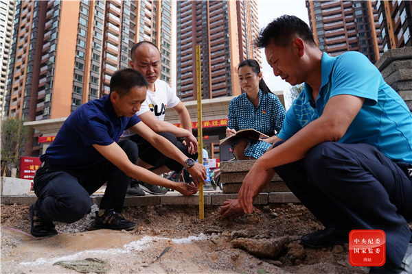 云南省昆明市西山區(qū)駐村一線紀(jì)檢監(jiān)察員對(duì)城中村改造道路施工質(zhì)量進(jìn)行督查,確保路基建設(shè)質(zhì)量,建人民滿意工程。(云南省昆明市西山區(qū)紀(jì)委監(jiān)委 尹彪 攝)