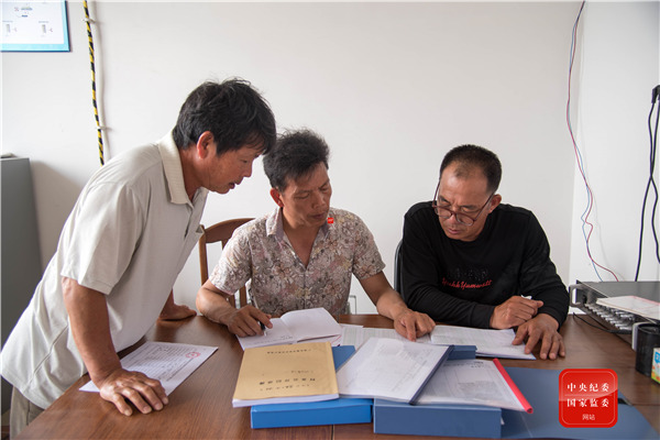 廣西壯族自治區(qū)鹿寨縣鹿寨鎮(zhèn)波井村村務(wù)監(jiān)督委員會(huì)成員定期對(duì)村級(jí)黨務(wù)、村務(wù)、財(cái)務(wù)公開情況及三重一大重要事項(xiàng)的決策等進(jìn)行監(jiān)督檢查,確保村級(jí)事項(xiàng)決策公平、公開透明。(廣西壯族自治區(qū)柳州市鹿寨縣紀(jì)委監(jiān)委 韋娟 攝)