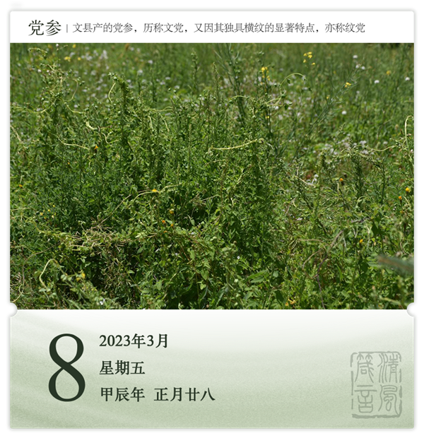 簡介:黨參,多年生纏繞藤本,我國有名的藥食兩用植物,具有健脾益肺、養(yǎng)血生津之功效。現(xiàn)代藥理研究表明,黨參還具有增強機體免疫力、保護胃腸道黏膜及抗?jié)?、促進造血機能、延緩衰老等多種藥理作用。黨參也是保健品,可入膳食,可做茶也可泡酒。花果期7-10月。文縣產(chǎn)的黨參,歷稱“文黨”,又因其獨具橫紋的顯著特點,亦稱“紋黨”,質(zhì)地優(yōu)良,歷史悠久,生長特殊,加工考究,入藥精道。其藥用價值與人參并列,為質(zhì)高的滋補佳品。