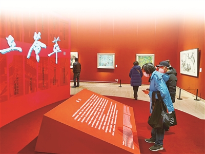 20世紀50年代以后,反映熱火朝天生活的藝術樣式漸漸成為主流,畫家們開始在傳統(tǒng)筆墨中融入新的風格。江蘇省美術館展廳展出了江蘇藝術群體“新金陵畫派”的作品。新金陵畫派是20世紀中國畫壇的重要畫派之一,畫家們倡導“思想變了,筆墨就不能不變”的藝術理念,在繼承傳統(tǒng)的基礎上以新筆墨反映時代的巨大變化。